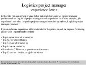 While a logistics manager has responsibilities that can vary from one company to another, we can As in most jobs (even those outside of the logistics industry), being organized and paying attention. Indeed may be compensated by these employers, helping. New jobs everyday means new opportunities.