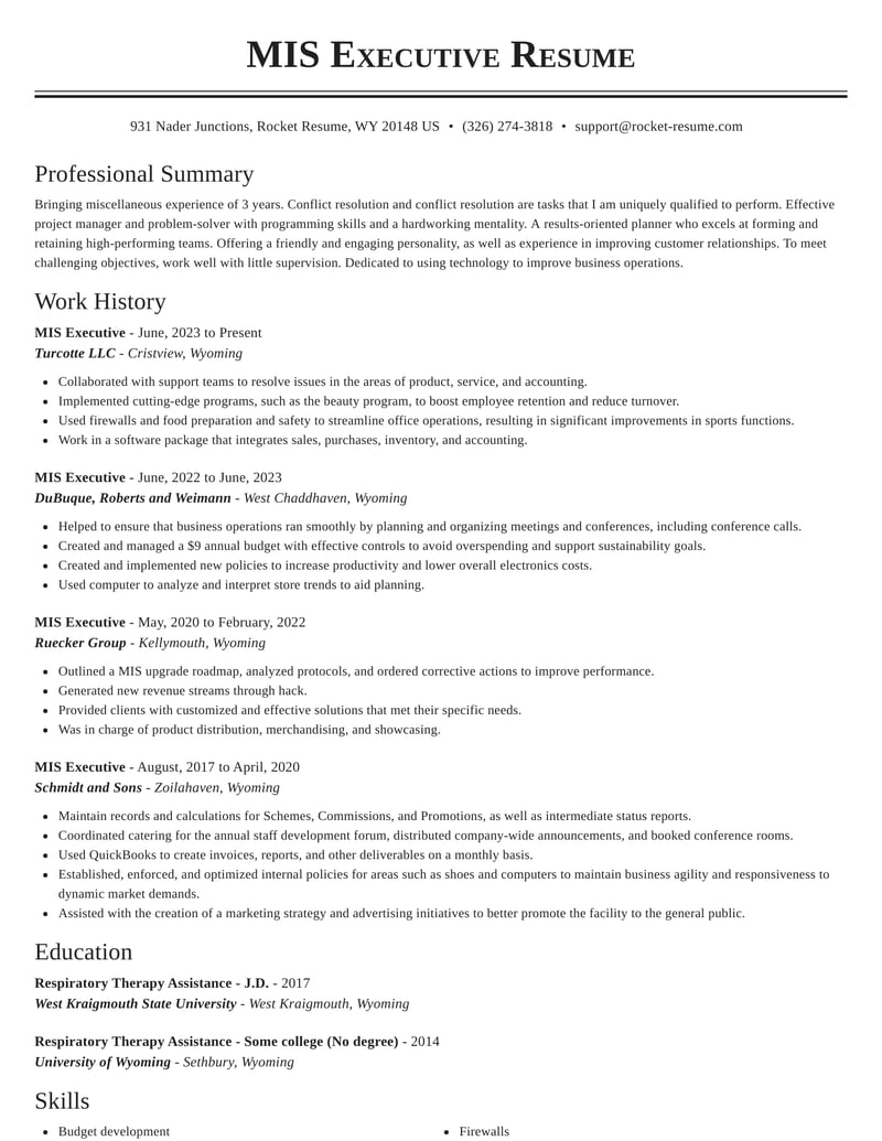 Mis Executive Resumes | Rocket Resume