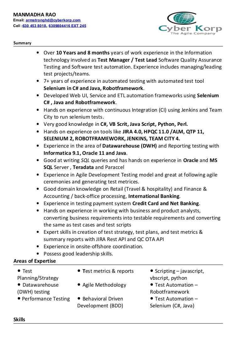 Resume accomplishments show employers that you're results-driven and will provide real value to their company. Here are some suggestions based on what we found, divided by the individual sections of the resume itself. Automation test lead resume is not just a document or a statement.