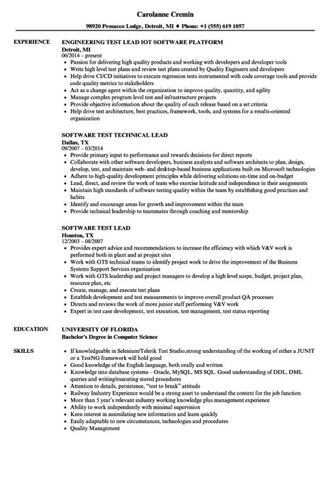 Resume For Test Lead. Recommended Test Lead Resume Keywords & Skills based on most important Skills Found on Successful Test Lead resumes and top skills required by employers. Mobile Testing Lead Resume Examples & Samples.