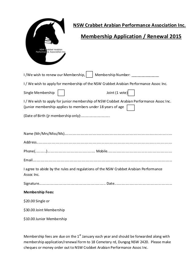 Nsw crabbet membership renewal form 2015