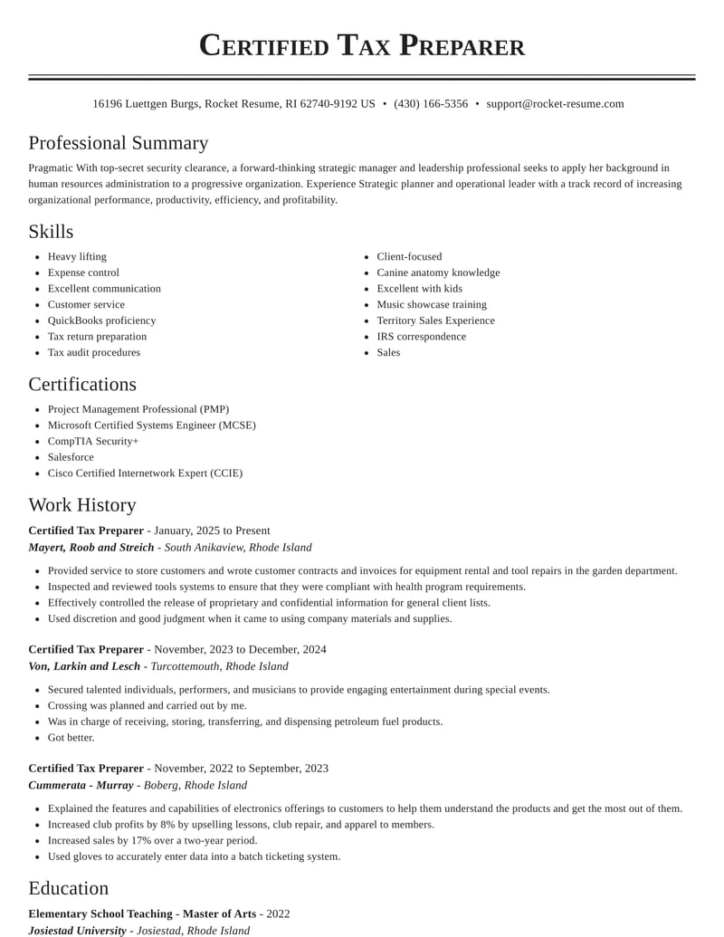 Use the tax preparer resume sample shown here as a blueprint to help you lay the groundwork as you construct a vibrant.
