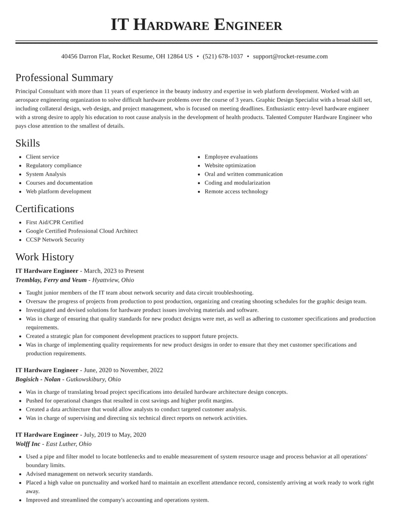 They design, develop, and build the equipment to optimally fit company goals and budget. Use this Hardware Engineer resume samples for inspiration! Industry leading samples, skills, & templates to help you create a job-winning professional resume.